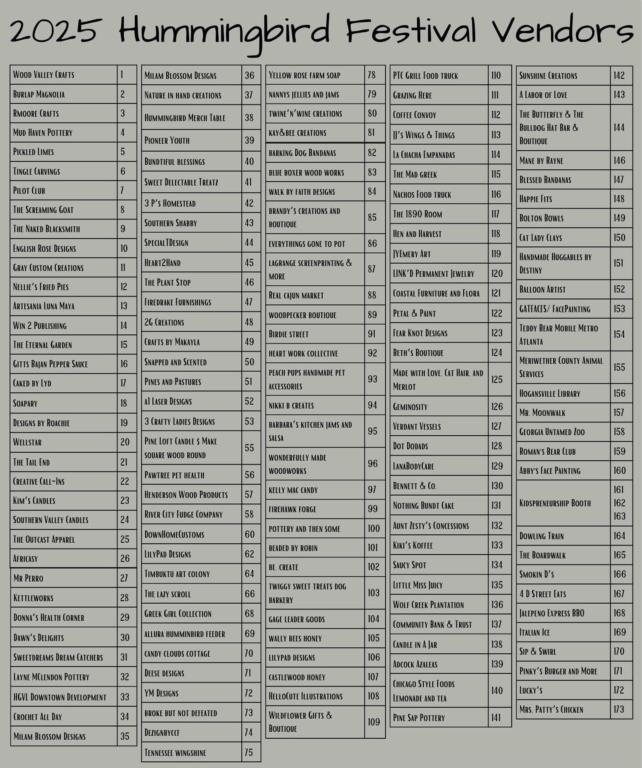 Hogansville Hummingbird Festival - PLEASE NOTE: Highway 54/East Main St will be closed Saturday and Sunday for the festival.